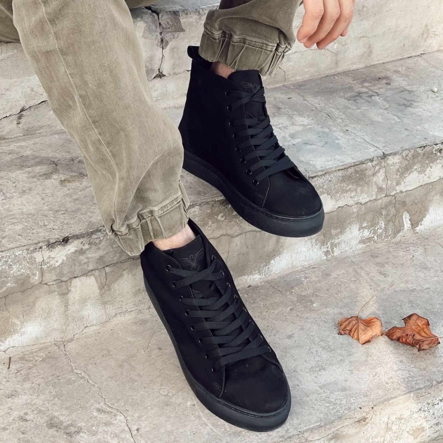 $55.992- BOTÍN ZAPATILLA DE CUERO NOBUCK NEGRO.